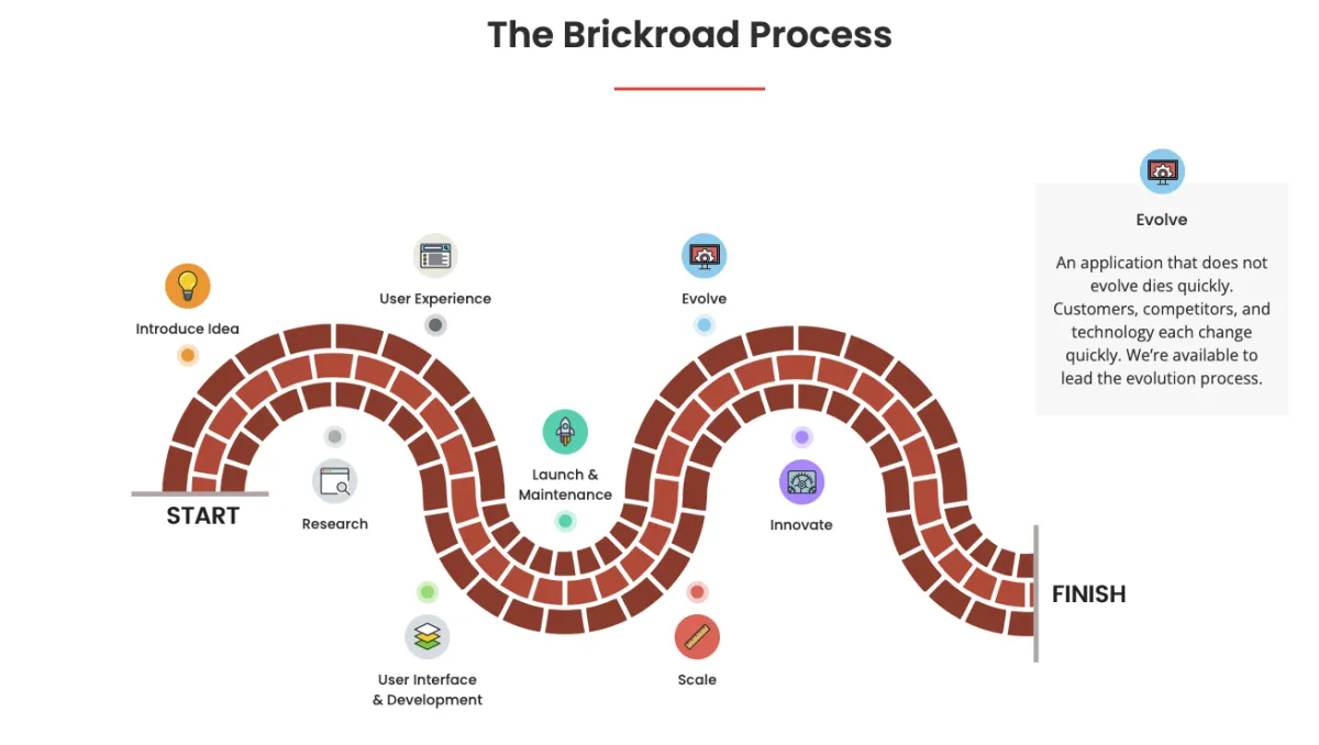 At Brickroad, we turn bold app ideas into real, revenue-generating products. We specialize in building MVPs fast and getting your first 100 real users within 90 days, guaranteed. From bootstrapped founders to global brands, we’ve helped launch platforms used in 47 countries, across 6 languages, and scaled to $8M+ in annual revenue. Our clients have collectively raised over $31 million. Whether it's a startup pitch or a corporate rollout, we bring Silicon Valley-grade development with results that speak for themselves. Your vision. Our execution. Real users. Fast.